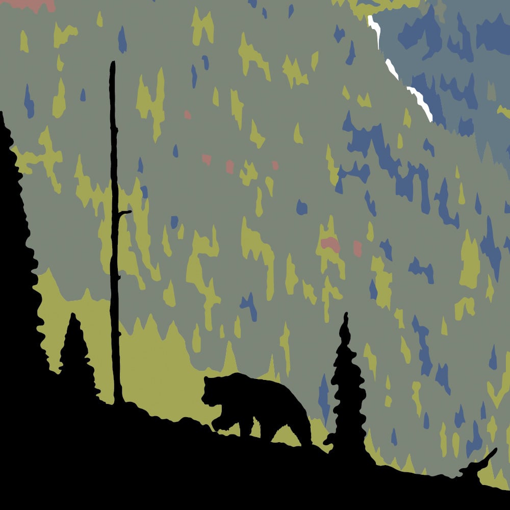 This 18" x 24" poster captures the quintessential Glacier National Park scene of Birdwoman Falls. Anyone who has travelled the famed Going-to-the-Sun Road has marveled at this spectacular site. Follow a lone grizzly bear's movement across the foreground of this iconic piece. Conveniently sized to fit a standard frame, and shipped in a protective tube, bring Glacier National Park into your home, office or share as a gift.